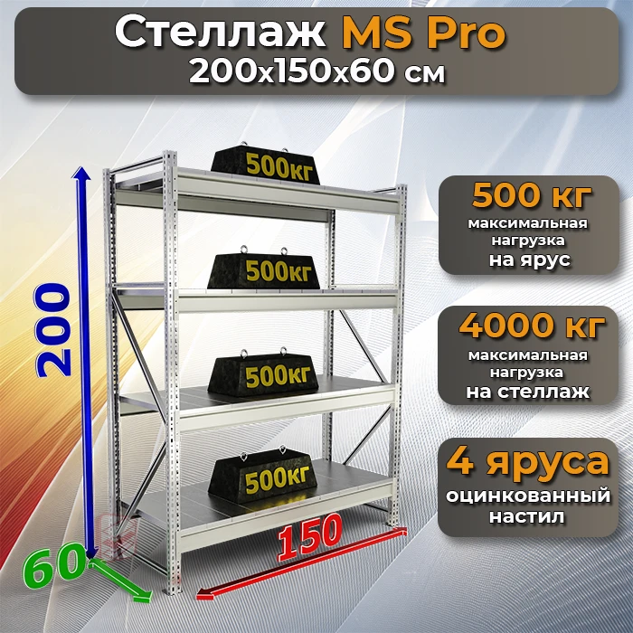 Стеллаж MS Pro 200х150х60 — это надежное и долговечное решение для оптимизации хранения в любых помещениях. Прочная конструкция и оцинкованный настил обеспечат удобство эксплуатации и безопасность хранения вашего груза.