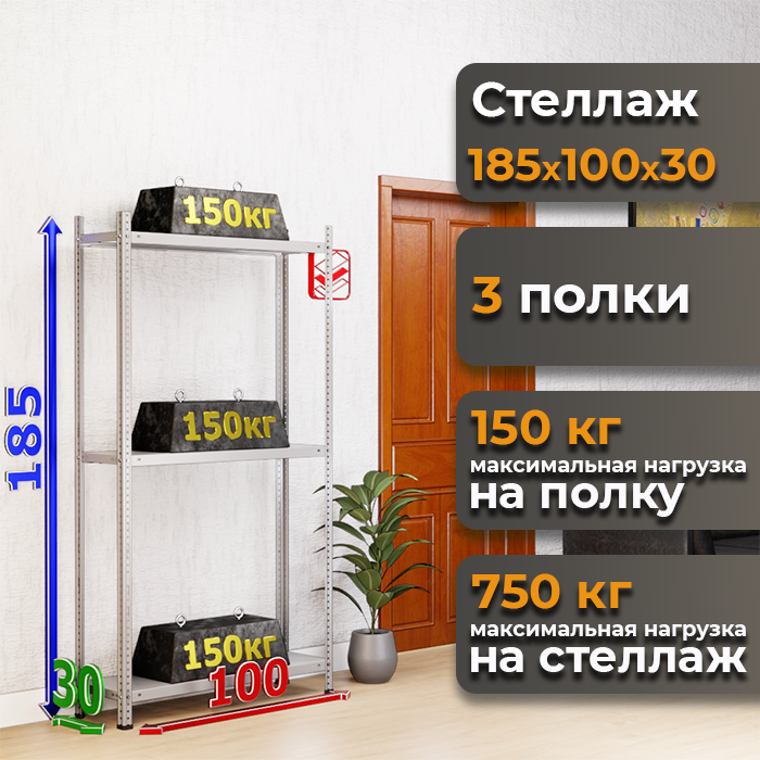 - Высокая прочность: Каждая из трех полок выдерживает нагрузку до 150 кг, а общий вес, который выдерживает стеллаж, достигает 750 кг.