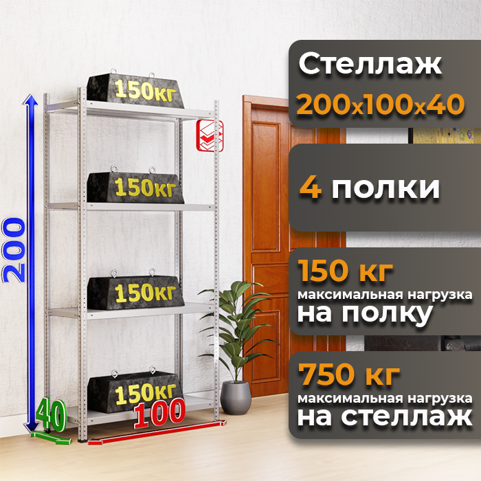 - Нагрузка на стеллаж: 750 кг