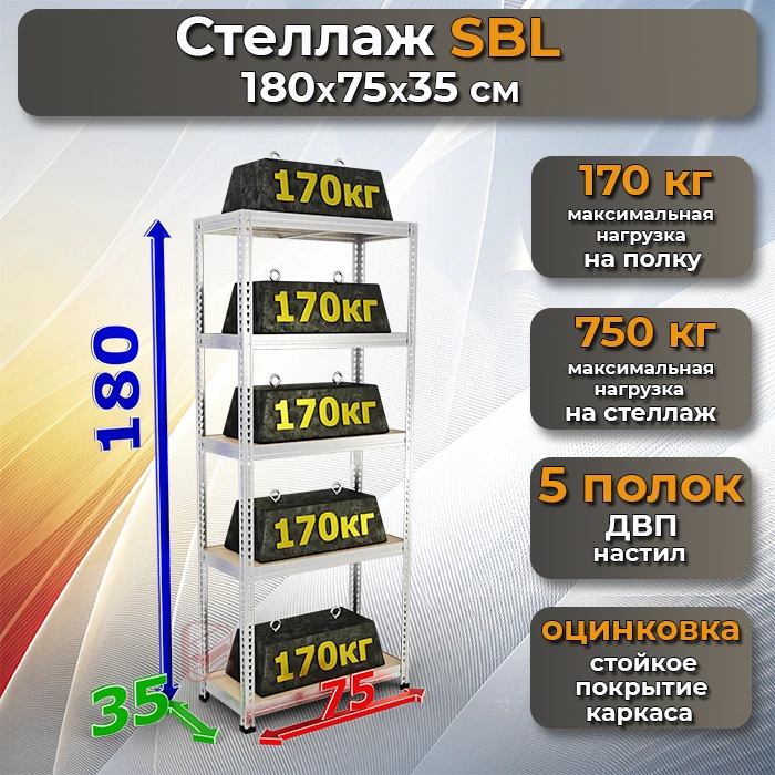 Стеллаж сборный SBL 180х75х35 5 полок