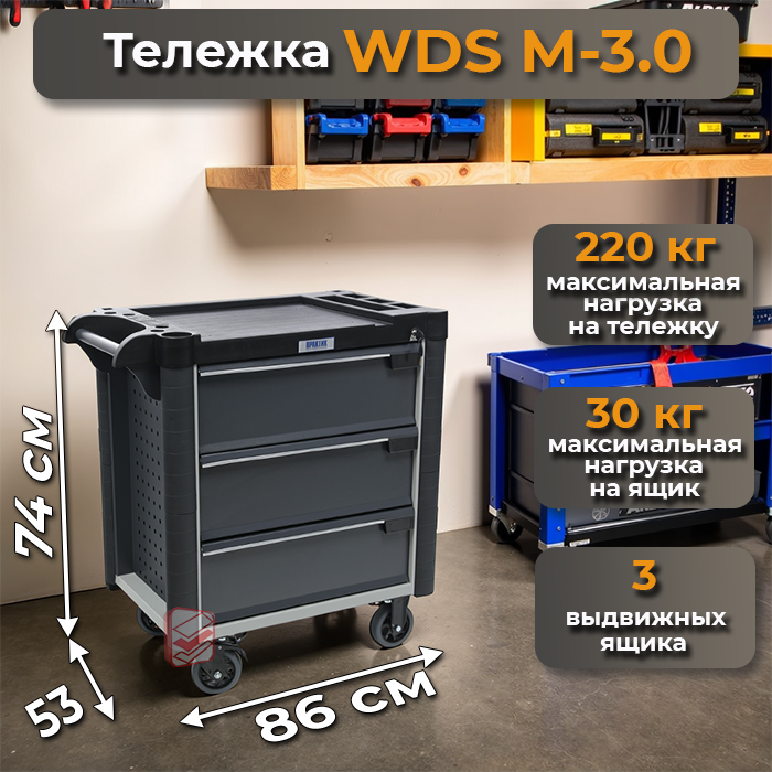 Тележка инструментальная WDS M-3.0 – это прочное, функциональное и современное решение для хранения и упорядочивания инструментов на производственных предприятиях, в автомастерских и других профессиональных пространствах.